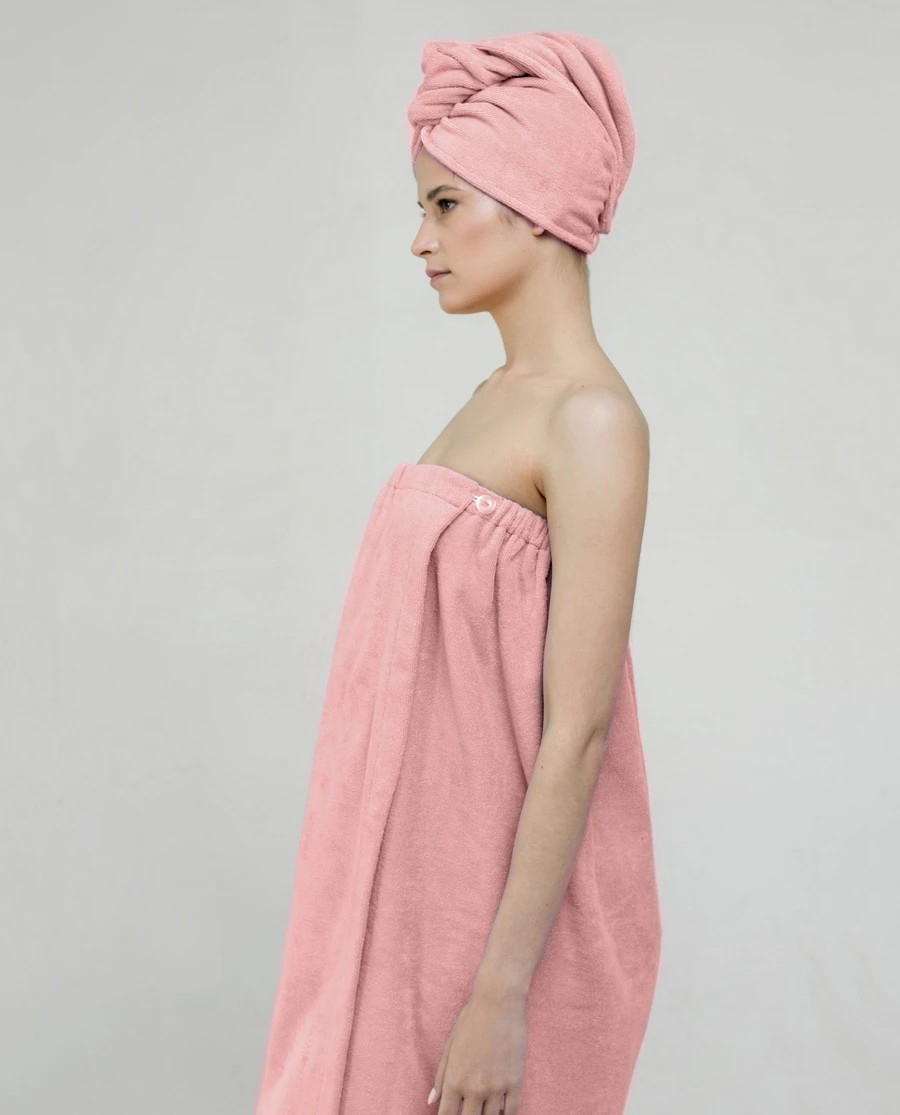Женский махровый банный комплект Премиум (Пудрово-розовый)